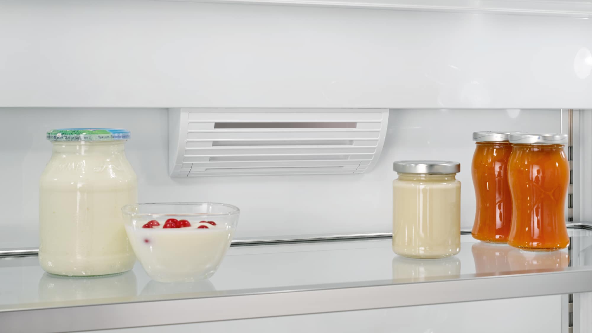 Existuje v chladničke správne a nesprávne miesto na skladovanie potravín? S DynaCool môžete potraviny skladovať tam, kde chcete. Vetranie integrované v zadnej stene rovnomerne distribuuje studený vzduch a zabezpečuje stálu teplotu a vlhkosť v chladničke. Nevznikajú žiadne rozdielne teplotné zóny, takže potraviny môžete skladovať kdekoľvek.