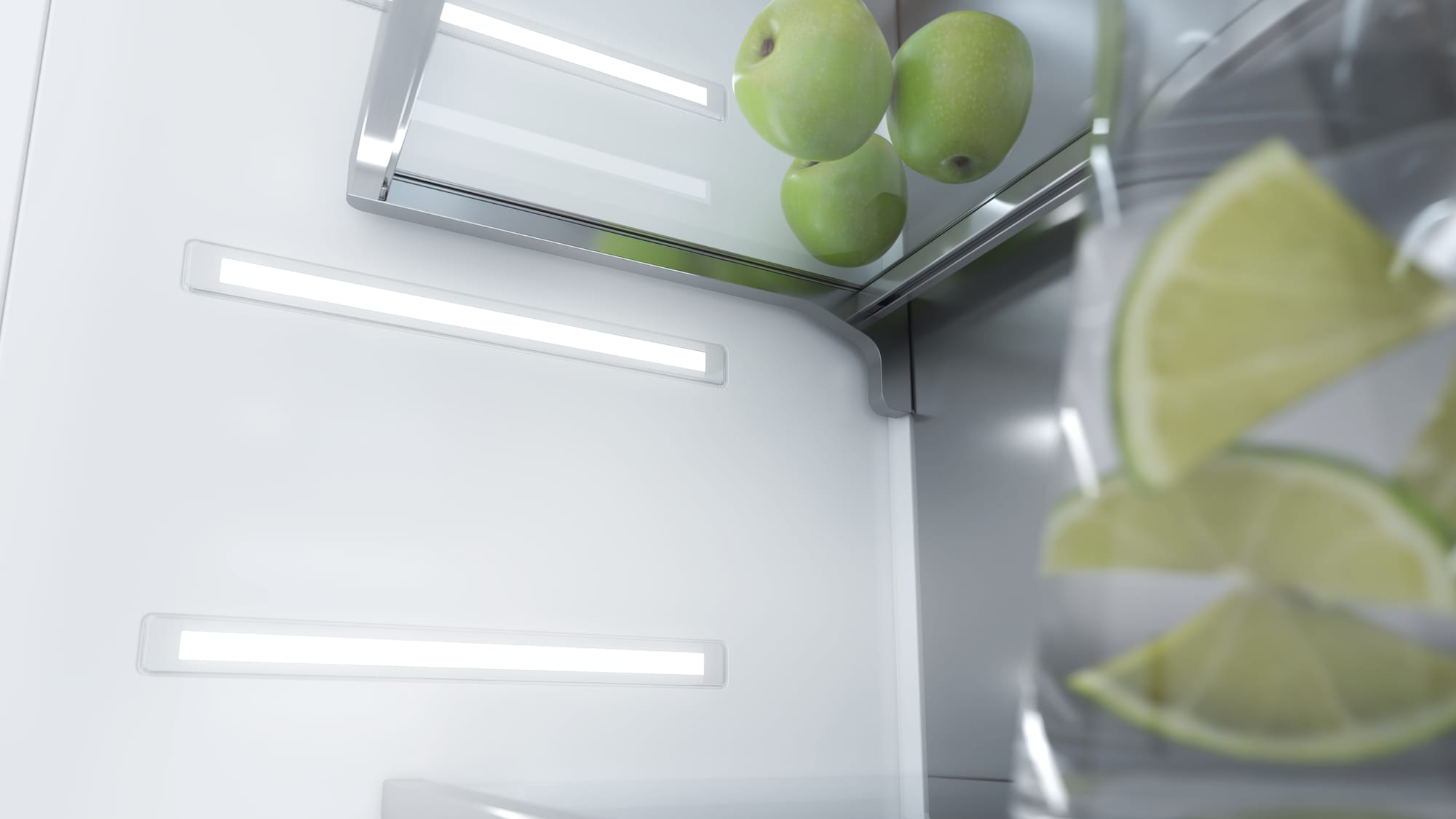 BrilliantLight osvetľuje vnútorný priestor Vášho spotrebiča Miele a Vy uvidíte potraviny v najlepšom svetle – aj v úplne plnej chladničke. Vysokokvalitné LED pásiky v bočných stenách zaručujú prvotriedne osvetlenie, hneď ako otvoríte dvierka.
