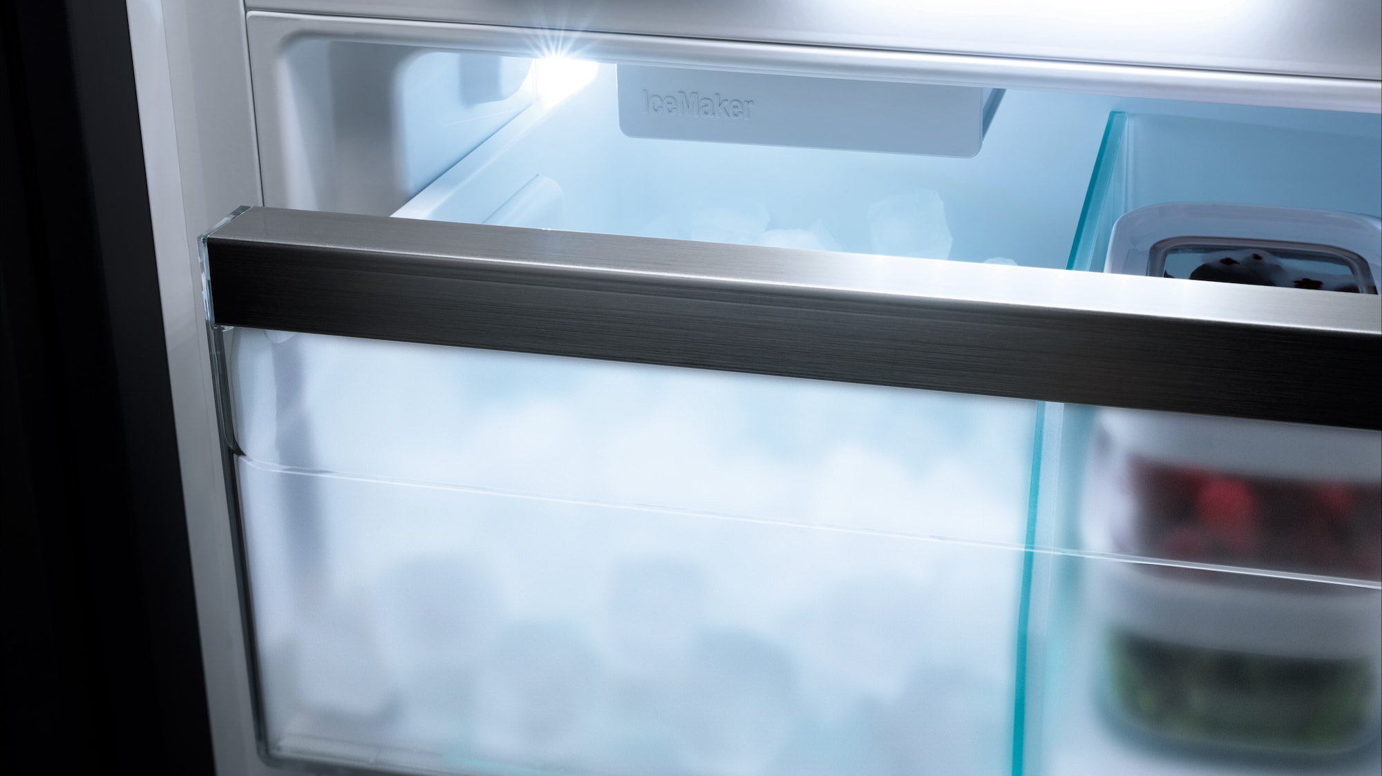 Vďaka IceMaker si ľadové nápoje môžete vychutnať kedykoľvek. Vaša mraznička Miele automaticky vyrába až 100 čerstvých kociek ľadu za deň. Kocky ľadu sa vyrábajú pomocou prípojky na čerstvú vodu, kým sa nádoba nenaplní.