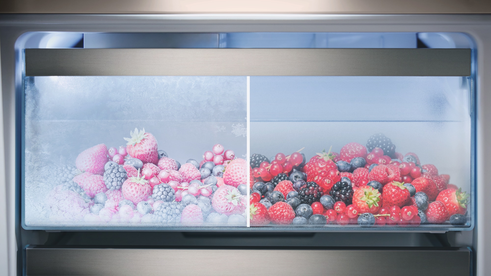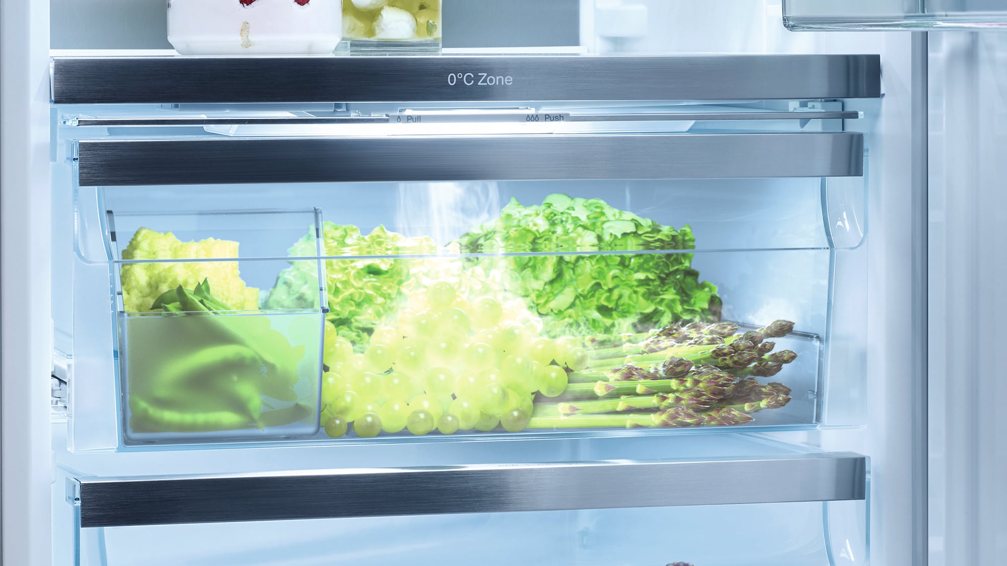 S technológiou MasterFresh značky Miele vydržia Vaše potraviny čerstvé až 3 × dlhšie. Systém ponúka dve zásuvky s regulovateľnými teplotnými zónami, ktoré zabezpečujú optimálne podmienky pre všetky potraviny a dlhšiu trvanlivosť. Horná priehradka poskytuje vysokú vlhkosť pre ovocie a zeleninu. Tesnenie a špeciálny kryt udržujú vlhkosť. V dolnej suchej priehradke sa teplota pohybuje v rozsahu od 0 °C do 3 °C, čo je ideálne pre mäso, ryby a mliečne výrobky.