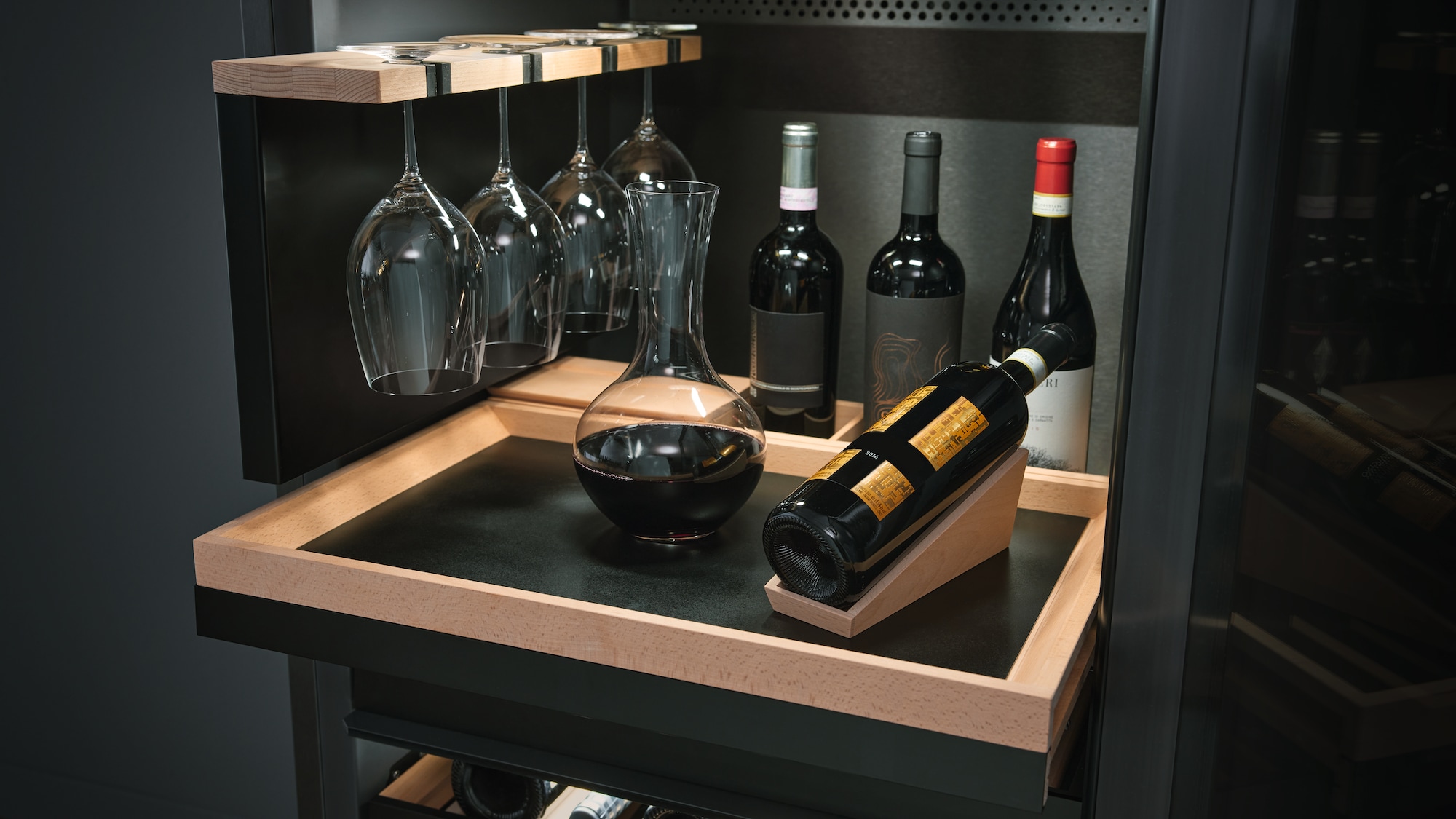 So súpravou SommelierSet premeníte svoju vinotéku Miele na sen pre každého milovníka vína: Vďaka dekantačnej zásuvke, držiaku na poháre, ConvinoBox a priehradke na príslušenstvo budete mať vždy po ruke všetko, čo potrebujete na dokonalý pôžitok z vína. Očarte svojich hostí profesionálne dekantovaným vínom, vychladenými pohármi na šampanské a biele víno. Po otvorení môžete svoje fľaše správne skladovať, čím zabezpečíte optimálnu teplotu. Všetko, čo potrebujete, aby ste si vychutnali víno všetkými zmyslami.