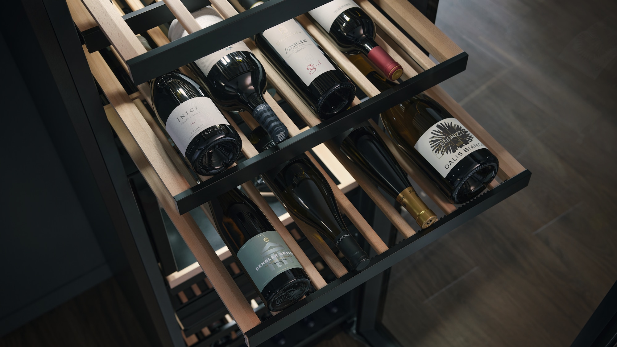 Vinotéky Miele sú vybavené univerzálnym rámom FlexiFrame s nastaviteľnými drevenými priečkami, ktoré bezpečne udržia fľaše rôznych veľkostí. Priečky môže jednoducho prestaviť a ponúkajú bezpečné uskladnenie klasických fliaš Bordeaux, dlhých fliaš rizlingu alebo fliaš magnum. Optimálne využitie miesta a bezpečné uskladnenie celej kolekcie vína.