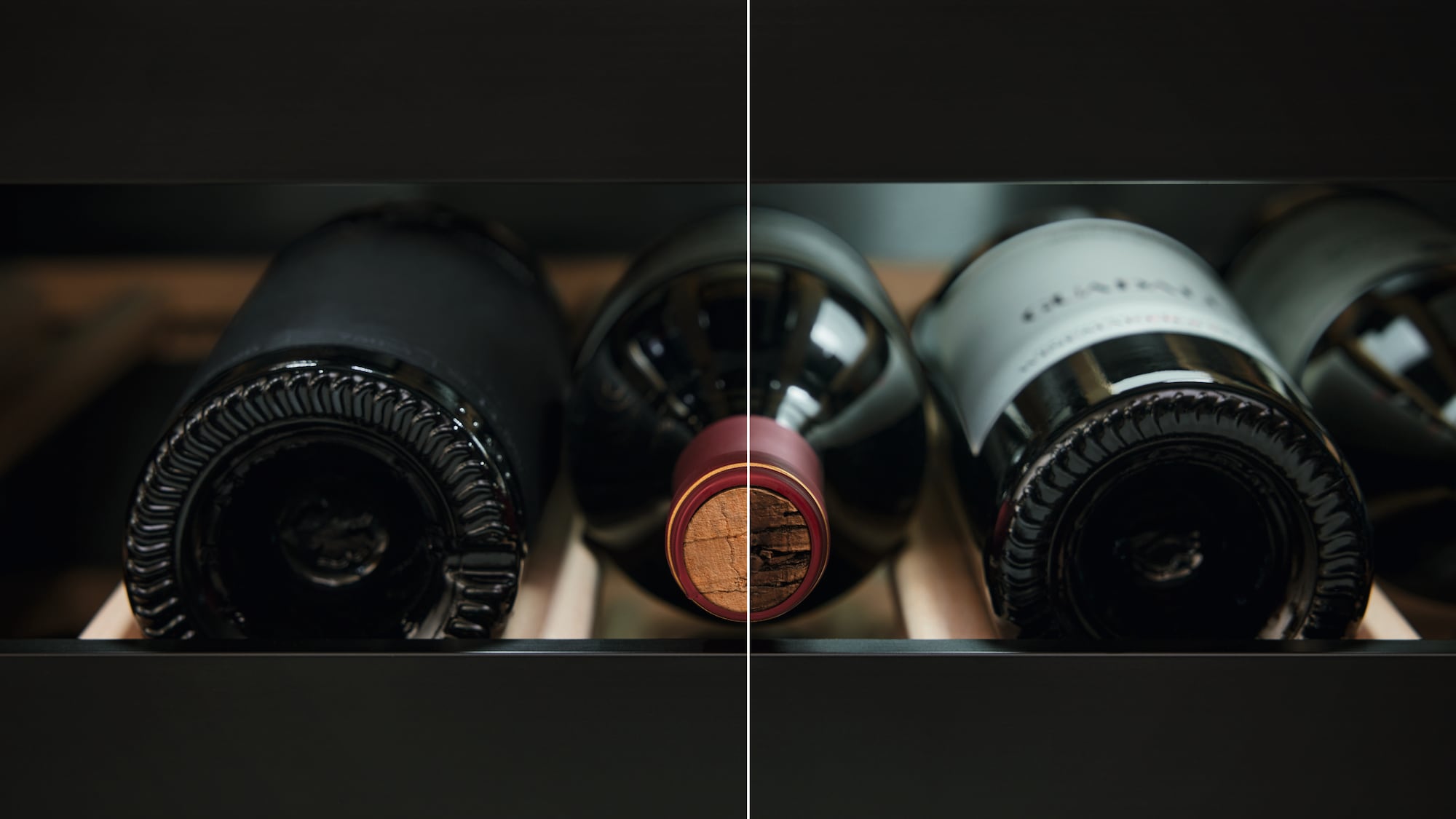 Na dokonalé skladovanie Vášho vína ponúkajú vinotéky Miele špeciálne navrhnuté komponenty. Chránia Vaše víno pred UV žiarením pomocou špeciálne tónových sklenených tabúľ a integrovaných filtrov, ktoré zabraňujú chemickým reakciám vyvolaných svetlom. Tichý, mechanicky oddelený kompresor redukuje vibrácie a zabezpečuje, že vína si zachovajú svoju kvalitu a charakter po dlhý čas.